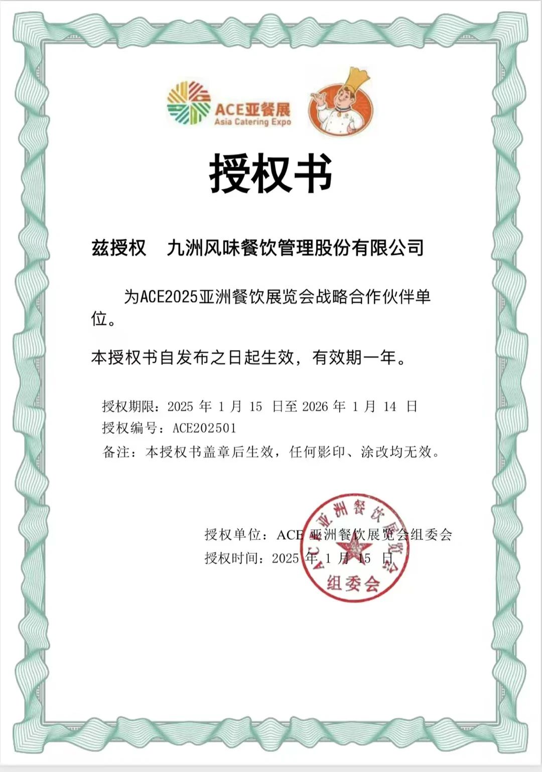 1月19日,ACE亞洲餐飲展覽會(簡稱ACE亞餐展)組委會一行到訪九洲風味餐飲管理股份有限公司(簡稱九洲風味)。雙方就共同做大做強ACE亞餐展達成共識,并將在ACE2025第三屆亞洲餐飲展覽會(簡稱ACE第三屆亞餐展)展開戰略合作。