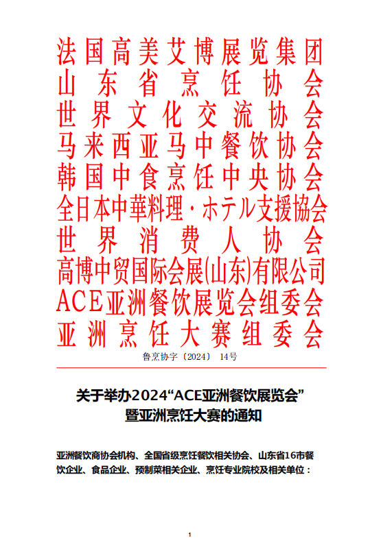 舉辦2024“ACE亞洲餐飲展覽會”暨亞洲烹飪大賽的通知