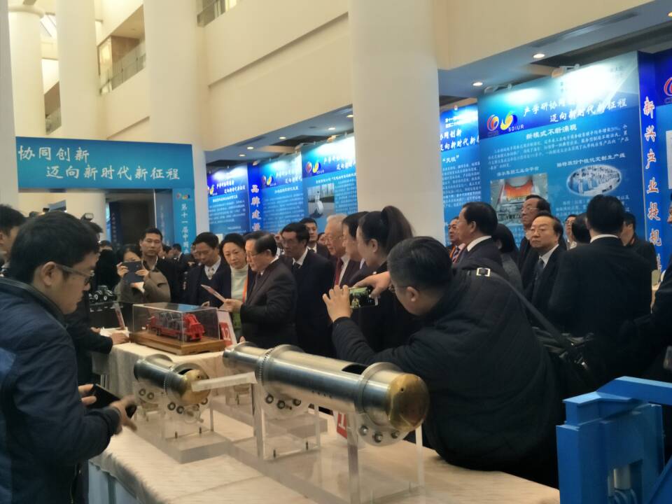 與會代表還參觀了山東省產學研展洽會。山東省委省政府高度重視產學研合作創新,從1991年開始連續25年舉辦產學研展洽會,有計劃、有步驟地組織開展各類產學研活動。在各級黨委政府的有力推動下,我省產學研協同創新不斷向縱深層次推進,合作模式日趨深化,已成為我省企業技術創新的理念和品牌。截至目前,省政府已與24家國內外知名高校、科研院所就產學研合作簽訂了戰略合作協議,建成各類新型研發機構109家,從事技術研發和轉化的人員6000余人;省級以上企業技術中心均與高校科研院所建立了穩定的產學研合作關系,通過產學研合作完成的企業技術項目占比已達95%以上,產學研合作在推動工業新舊動能轉換上發揮了重要作用。展洽會突出新舊動能轉換,以“新技術、新業態、新模式、新產業”促“智慧產業化、產業智慧化、跨界融合化、品牌高端化”實現“傳統產業提質效、新興產業提規模、跨界融合提潛能、品牌高端提價值”為主線,匯聚了威高妙手“s”微創手術機器人、海信計算機輔助手術系統、浪潮天梭M13、中集來福士藍鯨一號海洋鉆井平臺、盛瑞傳動混合動力八擋自動變速器、卡薩帝雙子云裳洗衣機等一大批我省企業通過產學研合作取得的,引領全省工業發展的重大創新項目,展示了近年來山東省產學研合作取得的豐碩成果。展洽會發布了省內外近50家重點高校、科研院所最新科技成果1600余項,省內近400家企業技術難題、人才需求500余項,為企業與知名專家、學者及研發機構搭建了直接交流平臺,達成了一大批重要合作意向。